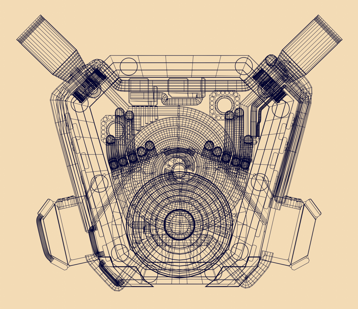 これは蒸気時代の機構をイメージした空想のエンジンです。これをblenderでモデリングして線画として出力しました。 謎の機構や配管の様子が見えるのはなんだかロマンを感じますね。