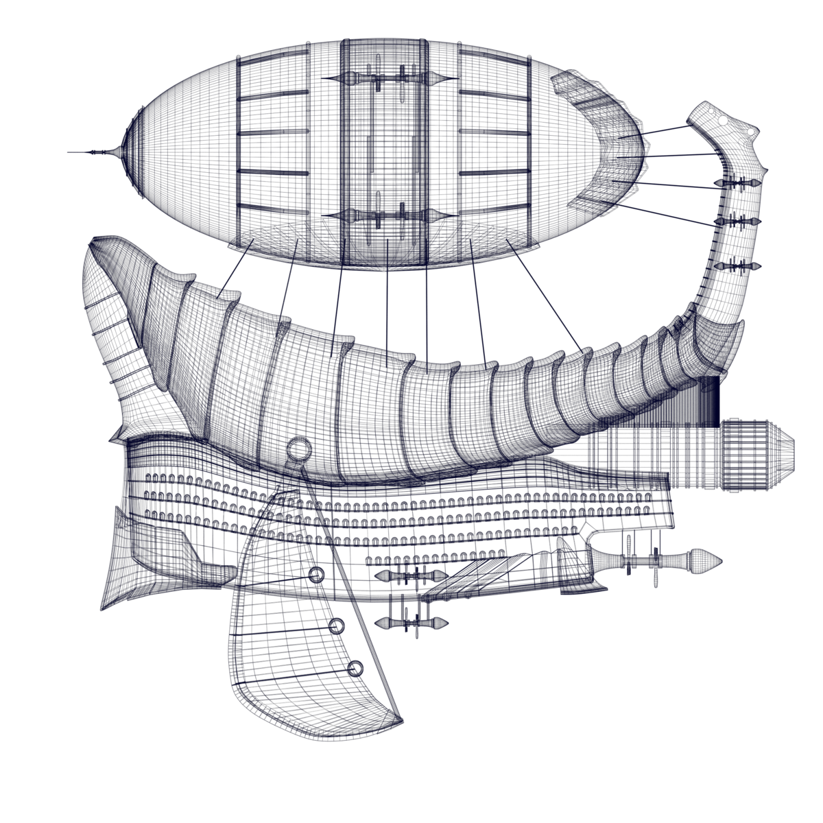 これは昔画集のために制作した飛行船です。線画出力を思いついてから過去作も線画にしたらいいのではということで線画にしてみました。3DCGは作ったものを再度利用するのが簡単なので過去作のリメイクということが可能です。